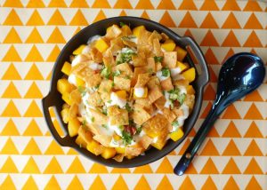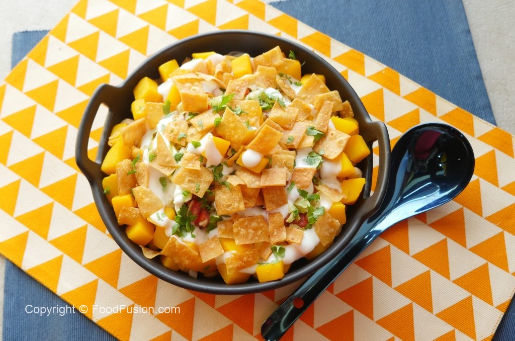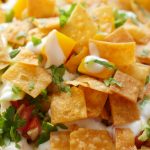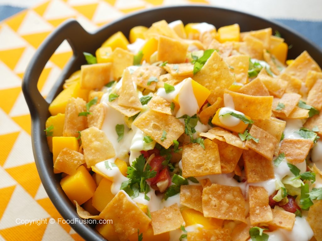 In serving dish,add papri,fresh coriander & serve!