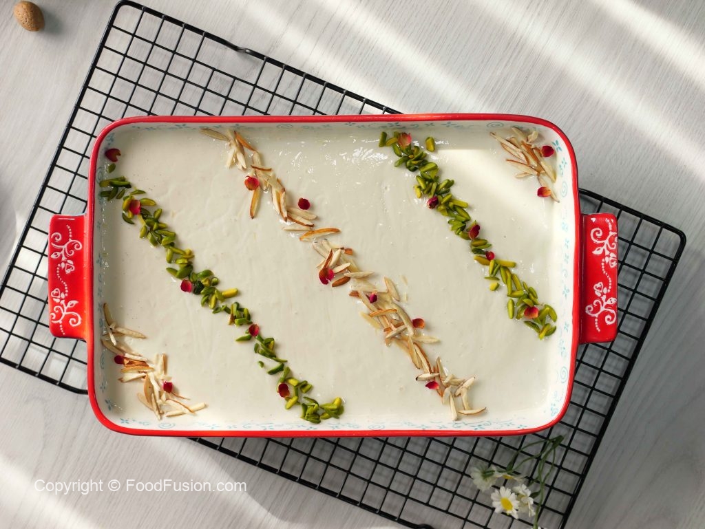 -Garnish with pistachio,amonds,dried rose petals & serve!