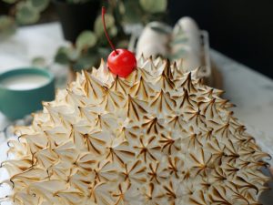 Toast the meringue with blow torch,cut into slices & serve!