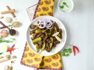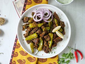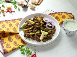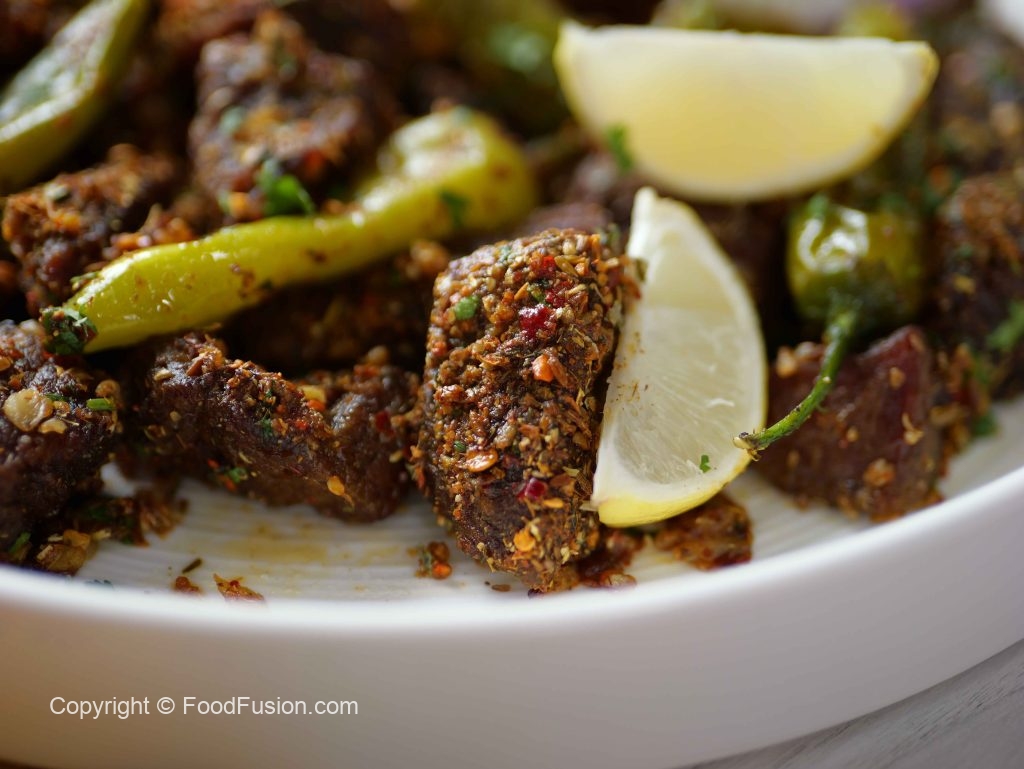 -In serving dish,add fried beef,sprinkle prepared balochi tikka masala,fresh coriander,lemon juice & mix well,cover & let it absorb the spices for 2-3 minutes.
