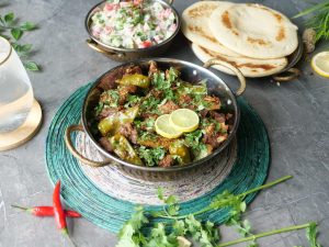 -Garnish with fresh coriander,add lemon juice,serve with dahi kachomar salad & naan!