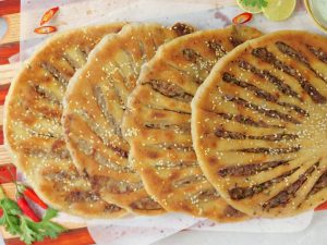 -On heated griddle,place paratha (sesame side down),add clarified butter & cook from both sides on low flame until golden (makes 5).