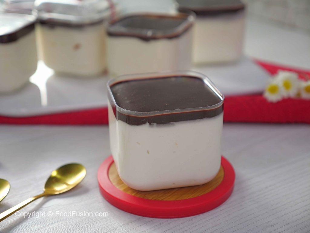 -Upper sa tayyar chocolate ganache pour karein (makes 6) & serve karein!