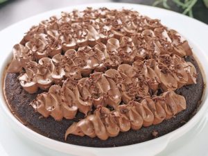 Now pour prepared chocolate ganache onto the top of cake & refrigerate until chilled.