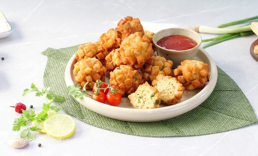 -In a wok,heat cooking oil & fry on medium low flame until golden & crispy (makes 15).