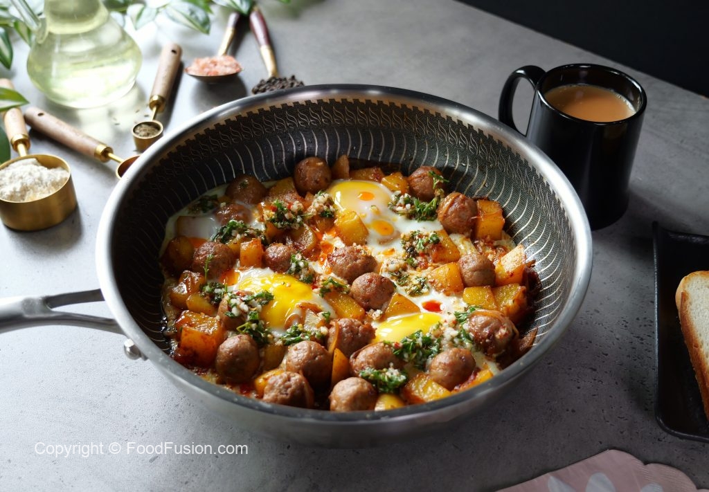 -Greased frying pan mein meatballs dal dein,chulha on karein aur halki ancch per light golden ho janay tak fry ker lein (3-4 minutes) & side par rakh dein.