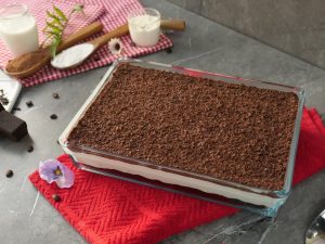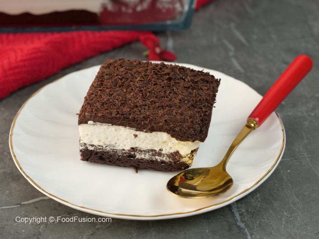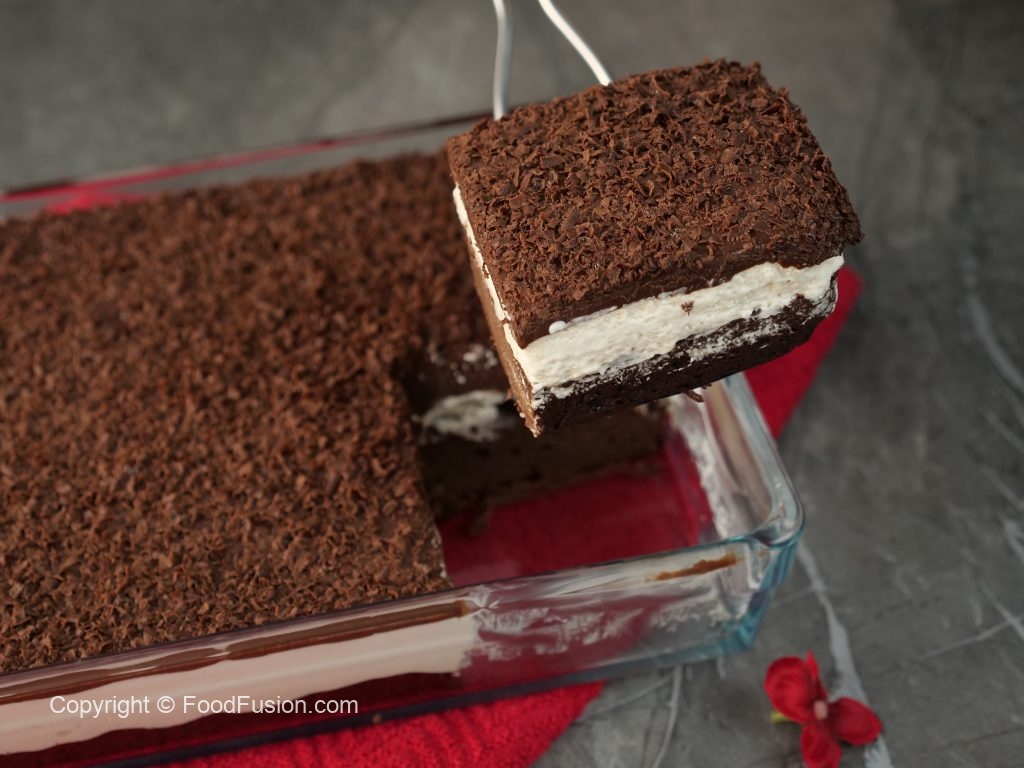 -On a serving dish,place chocolate brownie,add prepared olper’s whipped cream & spread evenly.