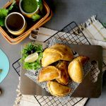 On baking tray,line with butter paper,place butter chicken empanadas and apply egg yolk.