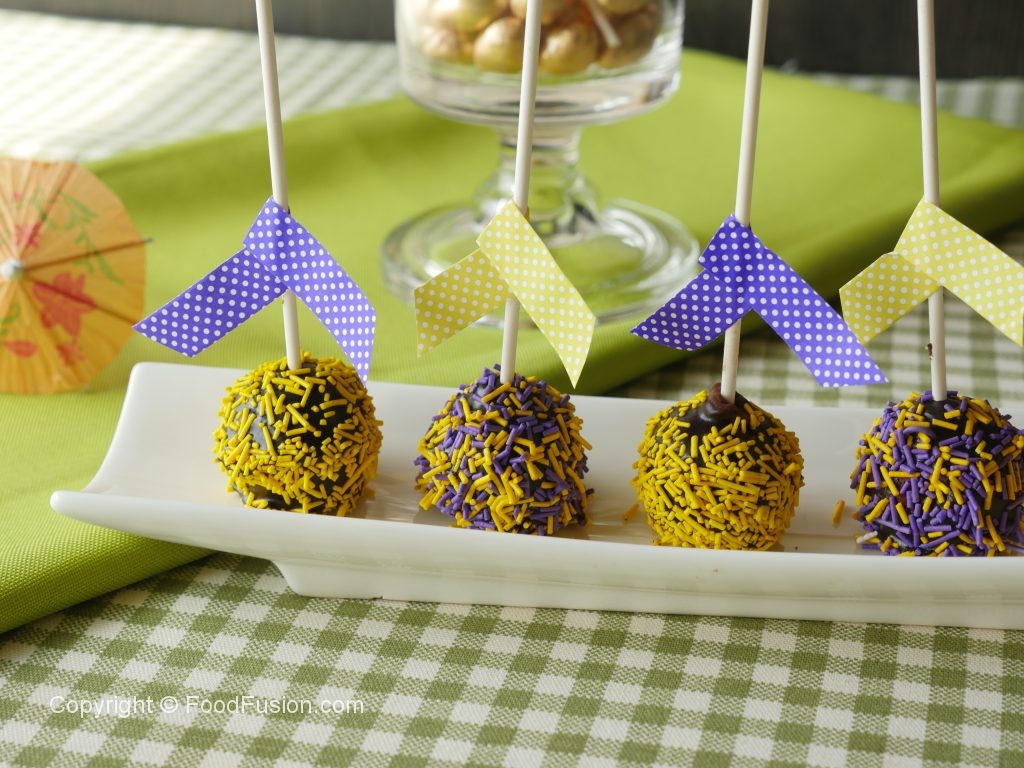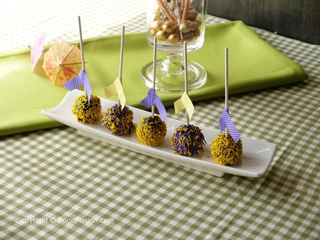 Ab cake pop sticks ko melted cooking chocolate mein dip karein aur foran cake pops mein laga lein aur 30 minutes kliya refrigerate ker lein.