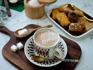 Serving cup mein chococlate tea dal ker serve karein!