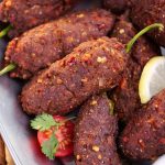 -Take small quantity of chapli kabab mixture & flatten it on your palm,place stuffed green chilli in the center & coat evenly.