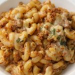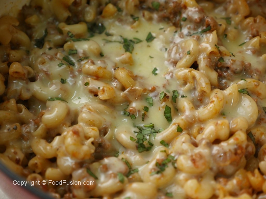 -Boiled elbow macaroni shamil karein aur mix ker lein.