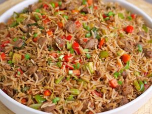 -Boiled chawal,kali mirch powder,pink salt,safed mirch powder,chicken powder,soy sauce,chilli sauce aur sirka dal ker ache tarhan mix karein aur tez ancch per ek minute kliya paka lein
