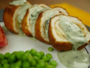 Cut the breasts from middle and flatten them using plastic wrap. Make sure it shouldn’t be flatten too much which break the tissues.