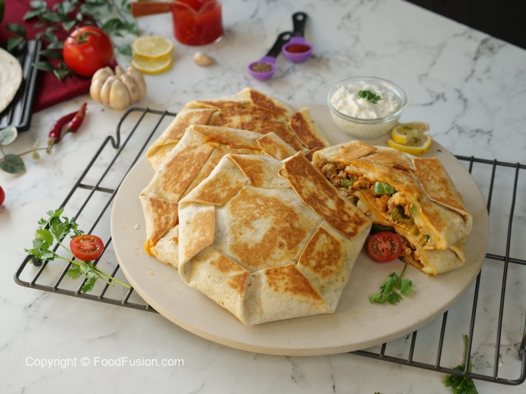 Chicken Fajita crunch-wrap, an ultimate feast Layered with flavourful spices & vegetables and mixed with the creamy goodness of Olper’s Dairy Cream. Try stopping yourself after the first fajita.#OlpersDairyCream #GoodnessBarhjaye #FoodFusion #HappyCookingToYou