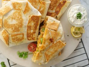 -Serve chicken Fajita crunch wrap with chilli garlic sauce!