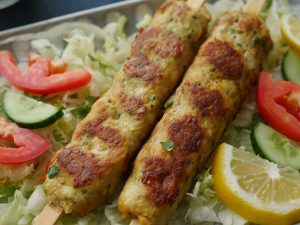 Haathon ko oil sa grease karein,mixture ko lein aur kabab bana ker skewers per laga lein (makes 10-12).