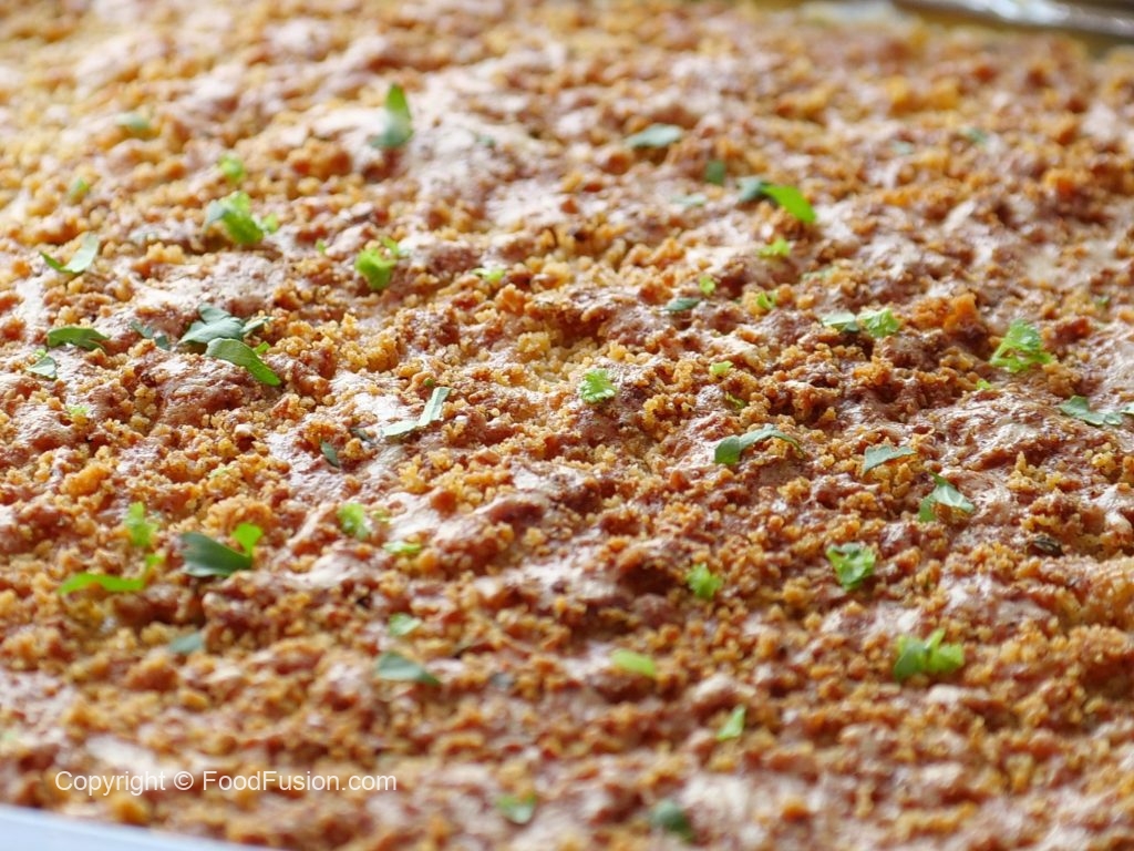 Breadcrumbs & cheese mixture sa dal ker top ko cover ker lein.