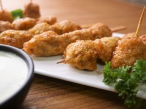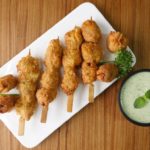 Thread chicken cubes into skewers or tooth pick.