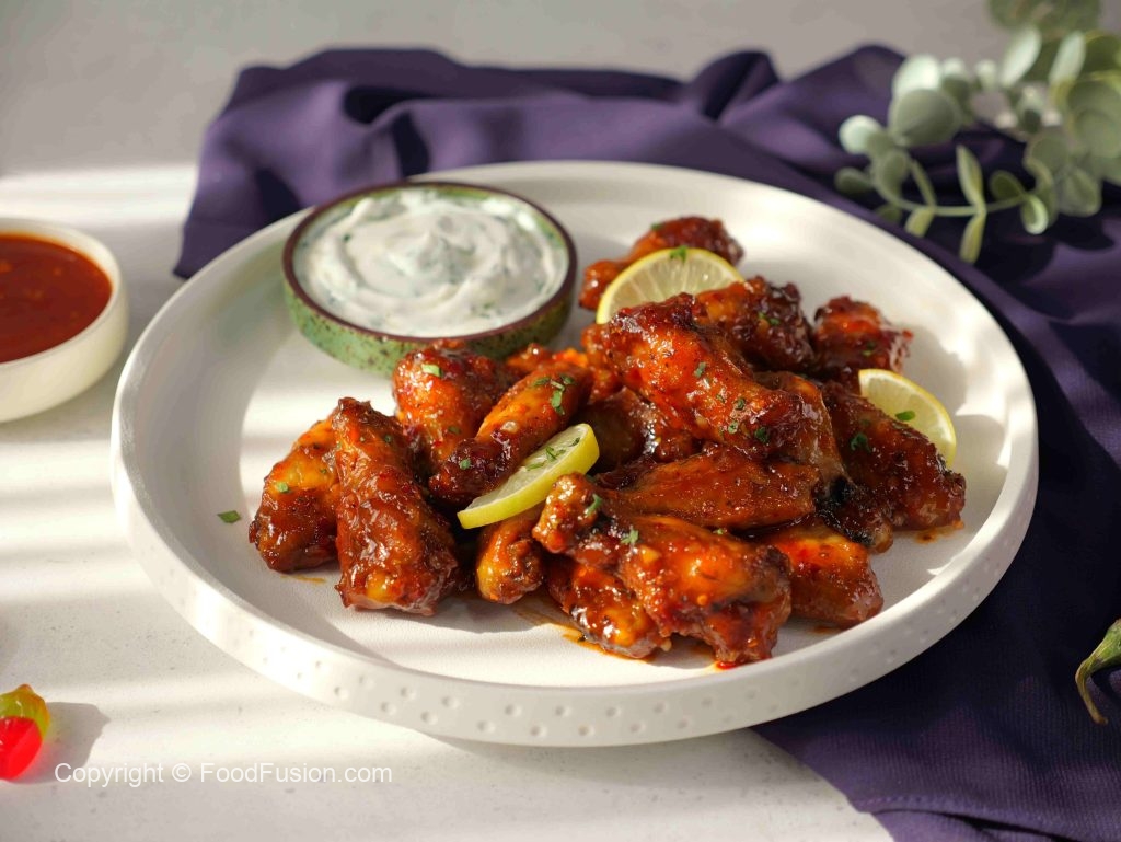 -In a bowl, add air fried chicken wings, pour some prepared chilli milli sauce, coat well.