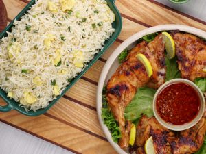 -Chicken tikka ko egg fried rice ka saath serve karein!