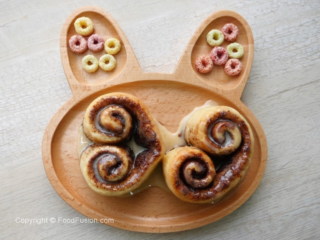 On baking tray (9x13”),lined with butter paper & grease with oil,place cinnamon rolls,cover and allow to rise for further 30-40 minutes or until doubled in size.