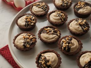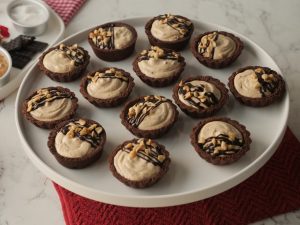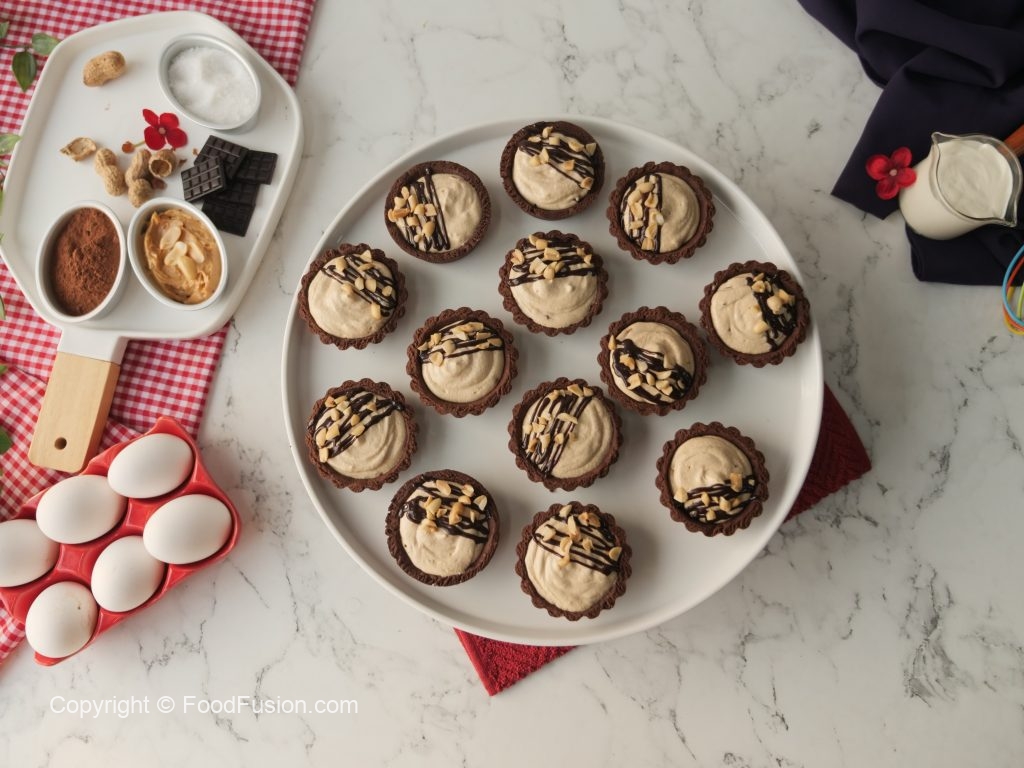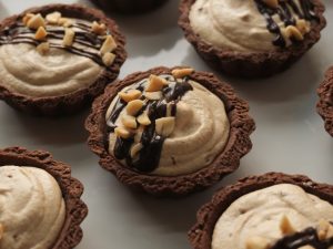-Fill tarts with peanut butter tart filling,garnish with chocolate ganache & peanuts.