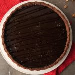 Pour prepared chocolate ganache over walnut salted caramel sauce,spread evenly & let it set in refrigerate for 2 hours.
