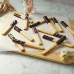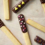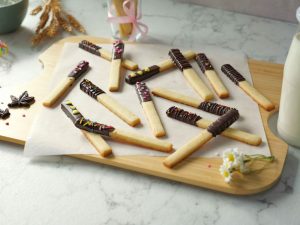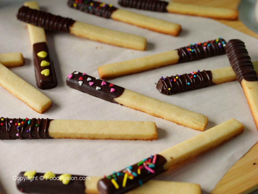 -Cookie sticks ko melted chocolate mein dip karein aur multi sprinkles se decorate karein.