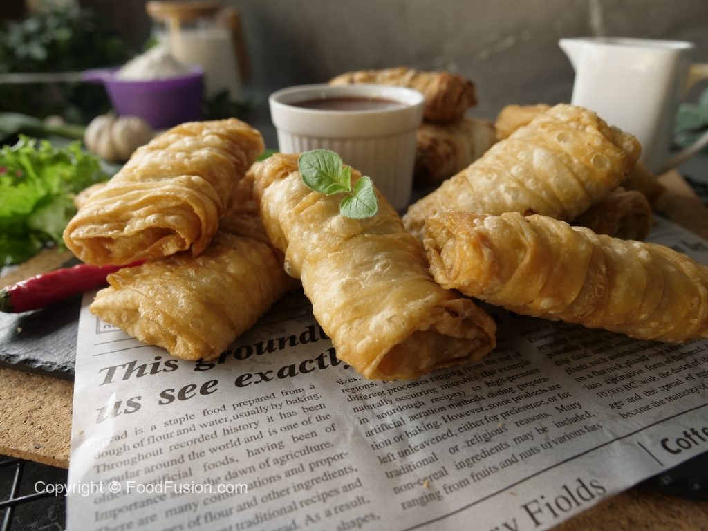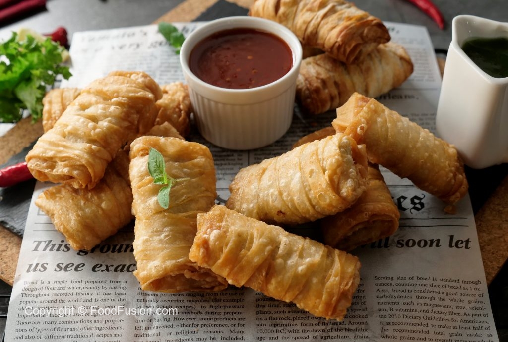 Tayyar creamy chicken filling rakh dein aur flour slurry laga ker sides ko fold ker lein aur sheet ko roll ker ka samosa tayyar ker lein (makes 18-20).