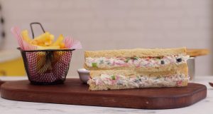 -Tayyar chicken mixture ko bran bread per laga lein,triangles mein cut ker lein aur French fries ka saath serve karein (makes 8-10).