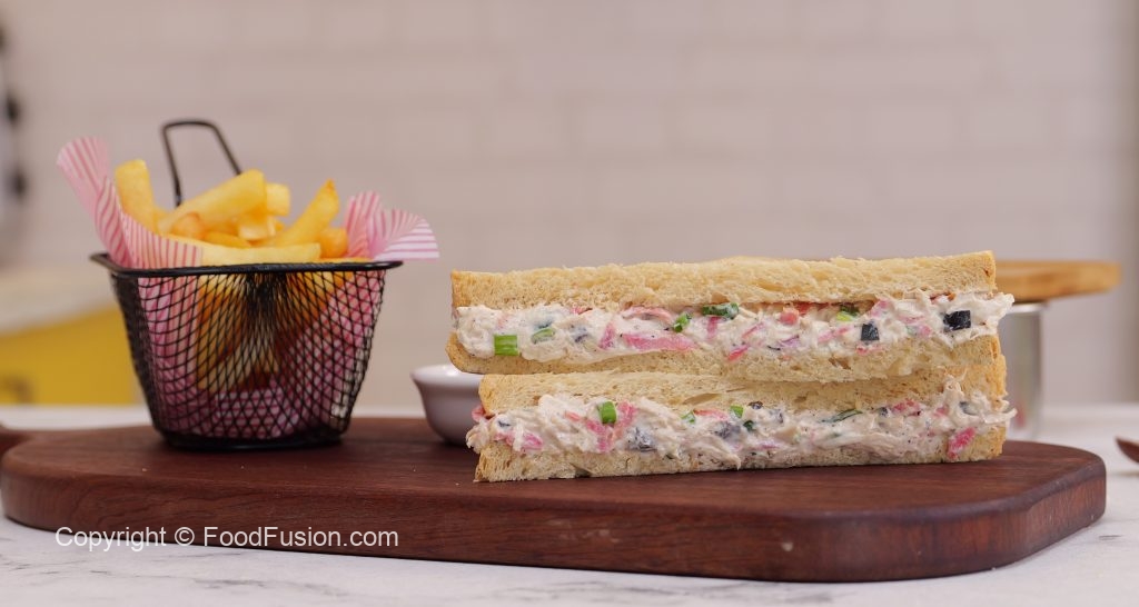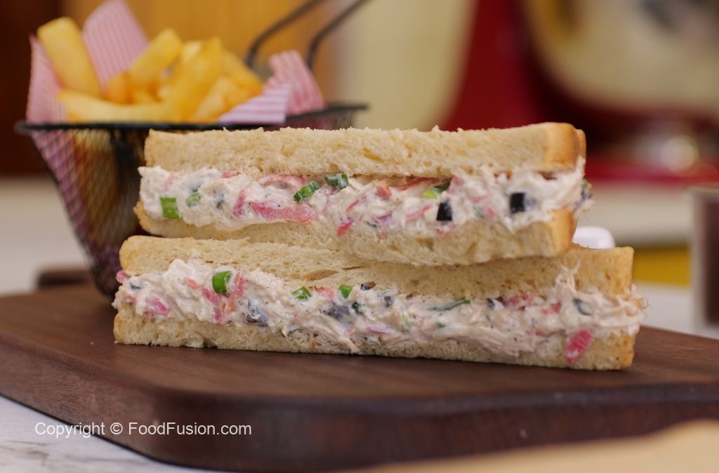 -Spread the prepared chicken mixture on bran bread slice,cut into triangles & serve with French fries or in a lunch box for kids (makes 8-10).