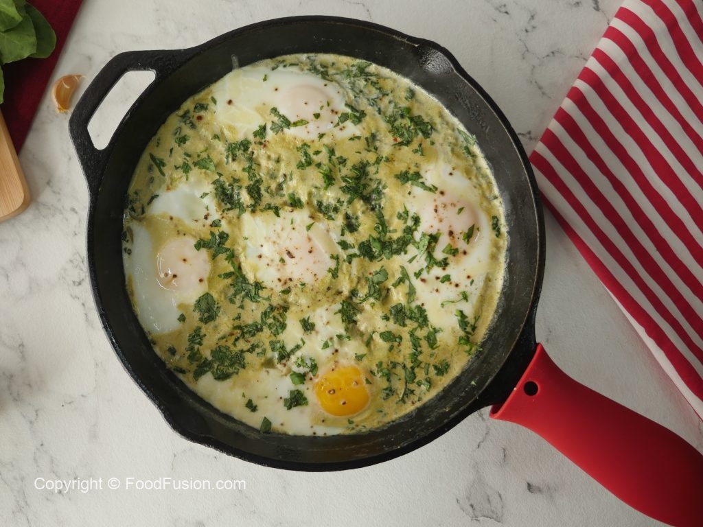 Ek,ek ker ka anday shamil karein,kali mirch crushed,cheddar cheese aur hara dhania dal ker dhak dein aur halki ancch per 2-3 minutes kliya paka lein & serve karein!