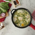 Cast iron frying pan mein olive oil aur lehsan dal ker ache tarhan mix ker lein.