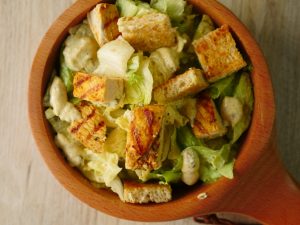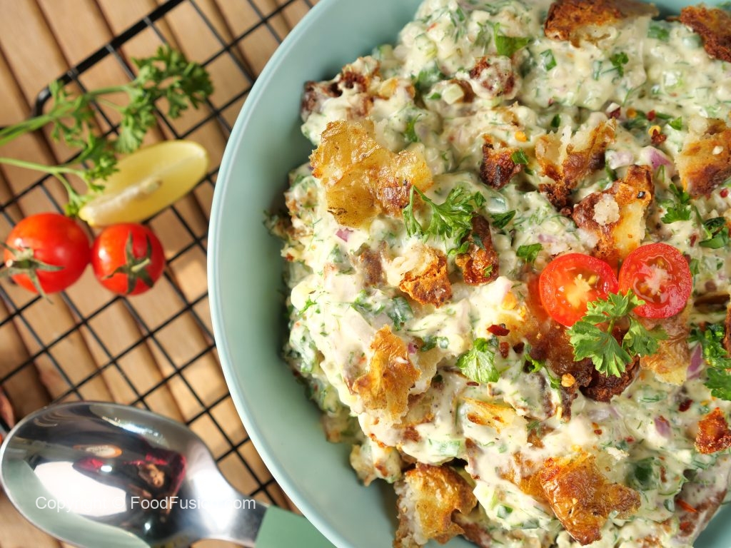 -Air fried potatoes ko crush ker ka salad bowl mein dal dein aur mix ker lein.