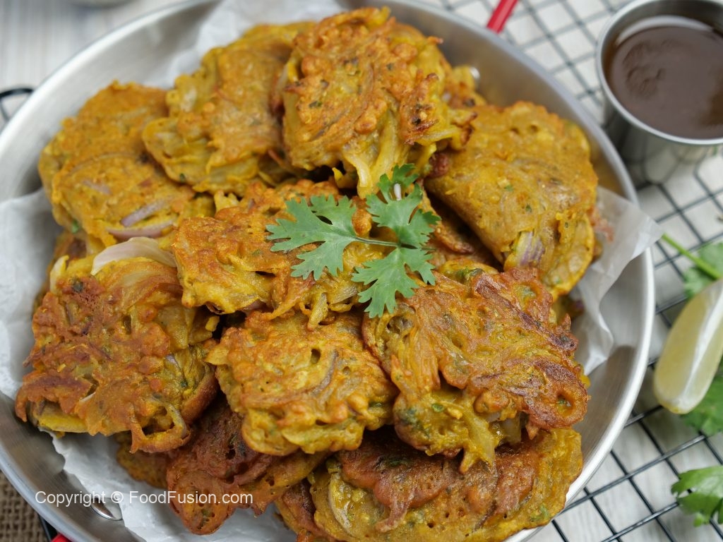 -On a griddle,add cooking oil,onion pakora batter & tawa fry on medium low flame from both sides until golden brown & crispy.