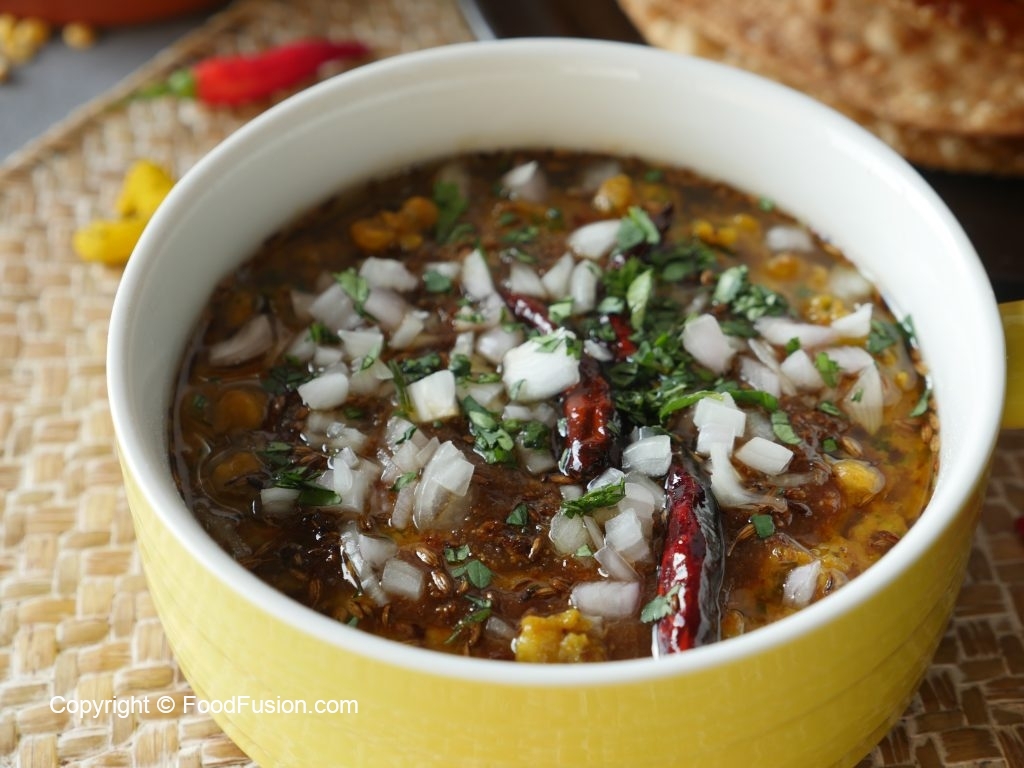 Serving dish daal ko nikal lein,imli pulp,chaat masala aur tadka dal dein,pyaz aur hara dhania dal ker serve karein!