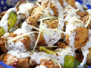 -In a serving dish,add chicken karahi,yogurt & sprinkle reserved spice mix.