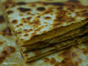 Tawa ko garam ker ka paratha ko ghee mein dono sides sa fry ker lein.