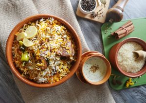 Add dissolve food color and fried onion,cover and steam cook on low flame for 8-10 minutes & serve!