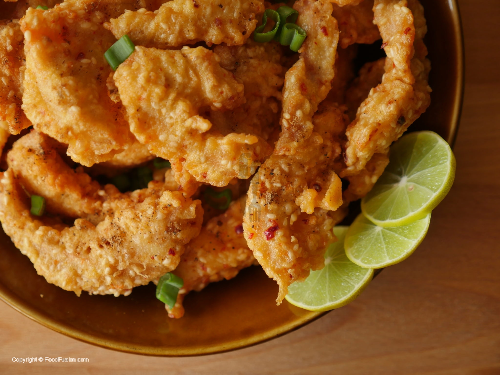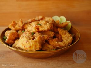 Add corn flour,sesame seeds,red chili crushed,chicken powder,salt and mix.