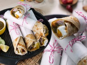 -On paratha,add & spread dynamite sauce,iceberg,tomato,cucumber,dynamite chicken,fold & wrap in butter paper (makes 6-8 Paratha rolls).