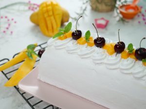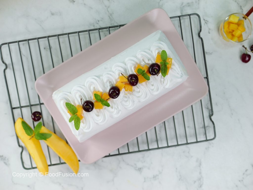 -Place pound cake & spread prepared mango puree on it.