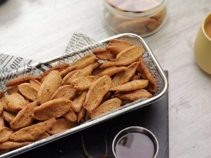 -In a wok,heat cooking oil & fry on low flame until golden brown & crispy.