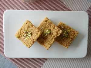 Cut into desired shape and add pistachios.