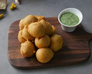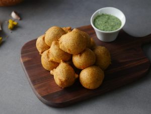 Take a mixture and make balls of equal sizes then dip into prepared batter.