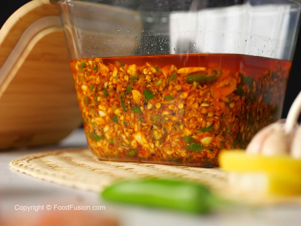 -Add hot mustard oil in pickle & mix well,cover & let it rest for 10 minutes.