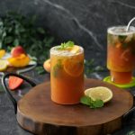 -Garnish with peach slice,mint leaves & serve!