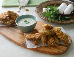 Chicken tenders ko mayo yogurt sauce ka saath serve karein!