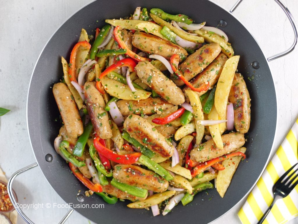 -Add red bell pepper,capsicum,onion,fried potato,fried kababs & give it a good mix.
